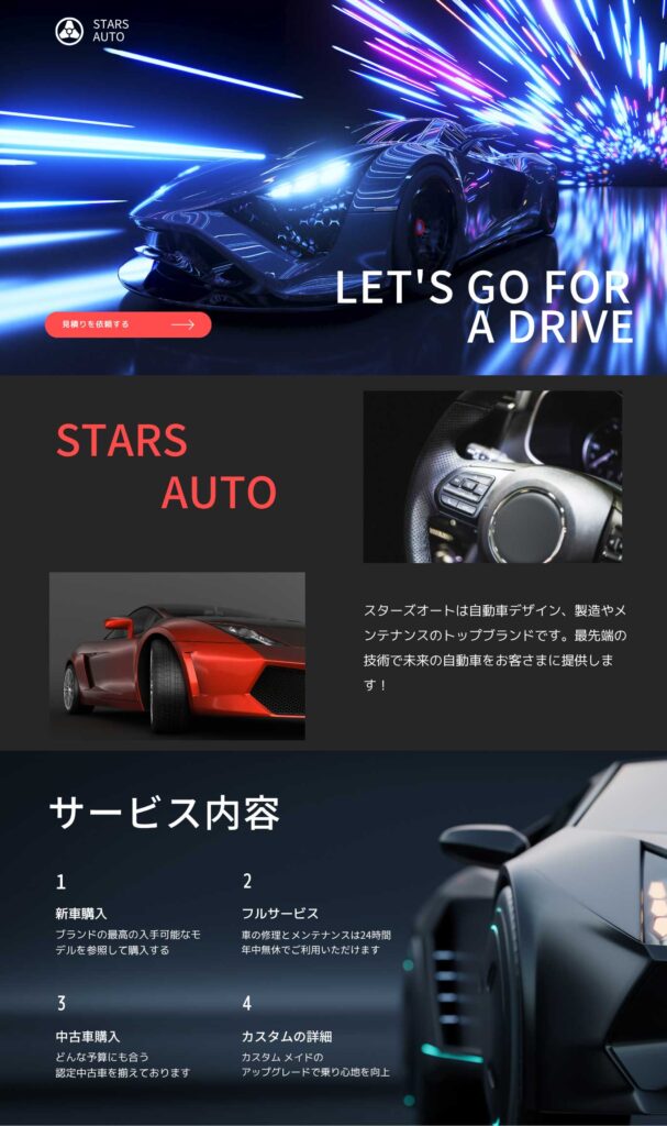 ※1 ホームページデザインに関しては、基本的に弊社ネオスターズのページ構成と同様のものとなります。